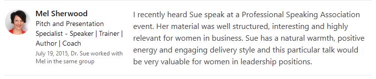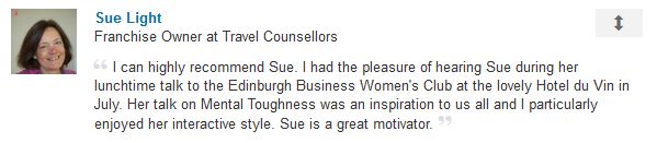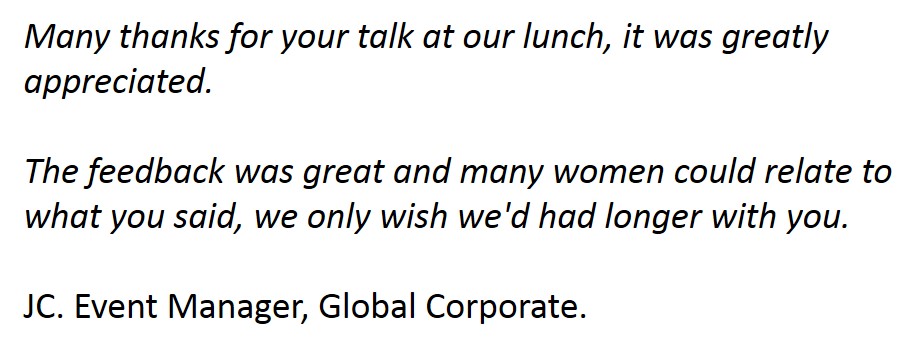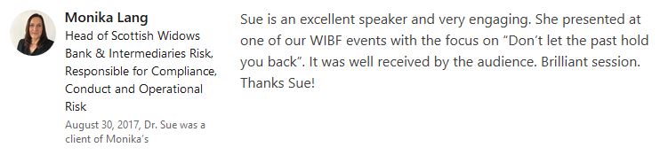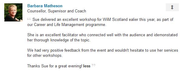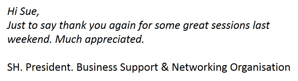 Sue consistently gets excellent feedback from the events she speaks at and organises.